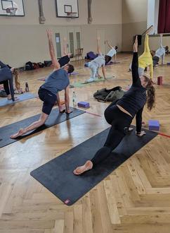 Am Sonntag, dem 26.11.2023 wurde durch den Turnverein 1848 Limburg e.V. ein Yoga-Pilates-Tag für jedermann veranstaltet. Die beiden Übungsleiterinnen überzeugten ihre über 65 Teilnehmerinnen und Teilnehmer in den angebotenen Kursen mit kreativen und sehr gut organisierten Kursinhalten aus den Bereichen Yoga und Pilates. Vermittelt wurden Vinyasa Yoga, mit Yang und Yin durch die Elemente, Faszien Yoga, Yin Yoga und Pilates. Aufgrund der Vielfalt der Angebote konnte sowohl Fortgeschrittenen, als auch Anfängern ein eindrucksvoller Einblick in die beiden Bereiche ermöglicht werden.