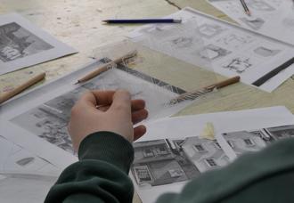 Treffpunkt war das Kunstzentrum der LahnArtists in der Schaumburger Straße. Die beiden Workshopleiter der LahnArtists, Kathrin Mock und Klaus Werner, hatten Motive von Gebäuden wie dem Dom oder historischen Häusern der Limburger Altstadt für die Schüler bereitgelegt. So konnte sich jeder Schüler ein Motiv aussuchen. Über das jeweilige Motiv wurde eine Radierplatte aus durchsichtigem Spezialkunststoff gelegt und festgeklebt. Dabei handelt es sich um eine preiswerte Alternative zu Zink- und Kupferplatten. Künstler wie Klaus Panzner arbeiteten für Radierungen mit Metallplatten. Nun ritzten die Schüler mit einer Kaltnadel oder Radiernadel die durchscheinenden Linien der Gebäude und der Bildumgebung in die Radierplatte ein.