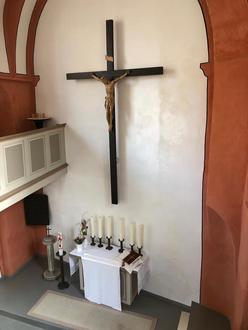 Reizvoller Altar- und Chorraum der Kapelle der Selbständigen Evangelisch-Lutherischen Gemeinde In der Erbach zu Limburg. Foto: Frank Sittel