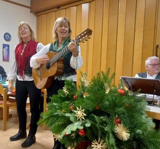 Als Besondere Überraschung begrüßte Hannelore Reusch 3 Mitglieder der „Elzer Stubbemusik“. Ulrike Wingenbach (Gitarre, Gesang) und Konny Neu-Müller (Hackbrett, Gesang) präsentierten volkstümliche Lieder aus dem Erzgebirge und dem süddeutschen Raum, begleitet von Manfred Winter an der Zither.