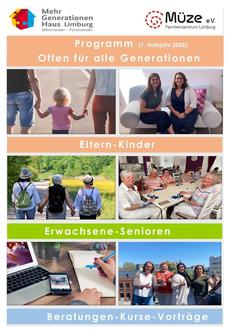 Das neue Programmheft für alle Generationen (Erstes Halbjahr 2026) ist fertig und kann ab Mitte Januar im Mehrgenerationenhaus Familienzentrums „Müze“, (Joseph-Schneider-Str. 1) in der WERKStadt abgeholt werden.