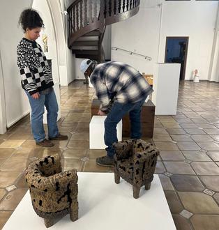 Aufbau der Ausstellung in den Kunstsammlungen. Mit werken von Studierenden und Alumni des Instituts für Künstlerische Keramik und Glas der Hochschule Koblenz (IKKG) starten die Kunstsammlungen in das neue Ausstellungsjahr.
