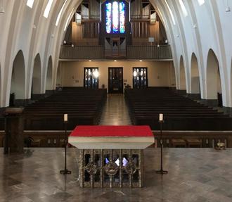 Zelebrationsaltar, Kirchenraum und große Orgel in der Limburger Pallottinerkirche