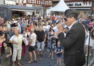 Auf dem Kornmarkt sorgten „Rody Reyes & Havanna von Klasse“ beim Altstadtfest 2018 für gute Stimmung unter den vielen Besucher.
