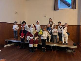 Gegen 16.00 Uhr war es dann so weit, der Nikolaus hatte sich Zeit für uns genommen. Nachdem er uns mit einer Weihnachtsgeschichte begrüßt hatte, verteilte er unterm Weihnachtsbaum die Geschenke an die Kinder.
