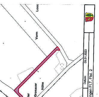 Die Wegeparzelle, die nicht mehr für den öffentlichen Verkehr zur Verfügung gestellt werden soll ist in der nicht maßstäblichen unten abgedruckten Liegenschaftskarte markiert dargestellt. Die Wegeparzelle ist in der Örtlichkeit nicht mehr erkennbar und wird derzeit als landwirtschaftliche Fläche (Acker) bewirtschaftet.