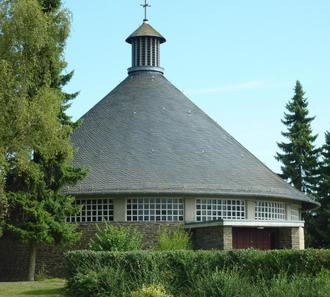 Nach dem Zuzug vieler Heimatvertriebener und einem regen Kurgastbetrieb kam es zum Neubau einer Kirche in Nauroth. Die einmalige Naurother Rundkirche wurde in den Jahren 1960-1961 aus dem Schiefer der heimischen Gruben gebaut und am 03.04.1961 dem Heiligen St. Hermann-Josef von Steinfeld geweiht. Das zeltförmige Dach ist innen mit Holz ausgekleidet, dadurch wirkt es im Kirchenraum warm und verleiht der Kirche eine gute Akustik.