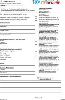Falls Sie über keinen Internetanschluss oder Smartphone verfügen, erhalten Sie das Kontaktformular auch in gedruckter Form. Brauchen Sie Unterstützung beim Ausfüllen, melden Sie sich bitte bei der Poststelle im Rathaus zu den bekannten Öffnungszeiten unter 06120 79 0.