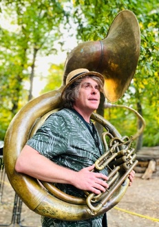 Durch den Abend führt uns Roland Vanecek, Tubist am Staatstheater Wiesbaden und Musikcomedian