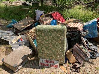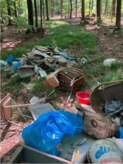 Am Freitag, den 16.06.2023, sowie am Montag, den 19.06.2023, wurde im Bereich Naurother Stock an zwei Stellen eine erheblich Menge Unrat im Wald entsorgt.