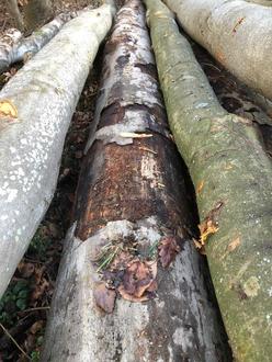 Die Bestellmenge liegt etwa drei Mal höher als in den letzten Jahren und übersteigt die maximal verfügbare Brennholzmenge um etwa 2500 Raummeter. Aus diesem Grund reduziert der Gemeindeforstbetrieb alle Bestellungen auf die von der Gemeinde festgelegten, haushaltsüblichen Menge von 15Raummetern. Dies betrifft vor allem die Bestellungen von gerücktem Brennholz, die bis maximal 15Festmetern möglich waren. Hier werden die Mengen auf max. 9 Festmeter reduziert. Dies entspricht dann den 15 Raummetern. Ohne diese Reduzierung würde sich die Zuteilung bis in den Winter 2023/2024 verzögern. Nichts desto weniger ist mit Verzögerungen bei der Bereitstellung zu rechnen, da die Brennholzmengen erst eingeschlagen werden müssen. Zudem kann auf Grund der Brennholzmengen in diesem Jahr auf Ortsnähe und Dimension des zugeteilten Holzes keine Rücksicht genommen werden. Auf Grund des trockenen Sommers kam es zudem vielfach zu Absterbeerscheinungen in den Buchenbeständen. Viele Buchen weisen abplatzende Rinde durch Sonnenbrand und Trocknis, sowie schwarze Verfärbungen auf. Dieses Holz ist als Brennholz tauglich und wird ebenfalls zugewiesen, da ansonsten die Bestellmengen noch weiter hätten reduziert werden müssen (siehe Bild).