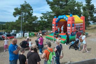 Der Atzmannhütte Dickschied, Dominik Knorr und Team, als Start- und Endpunkt und als Organisator der viel genutzten Hüpfburg.