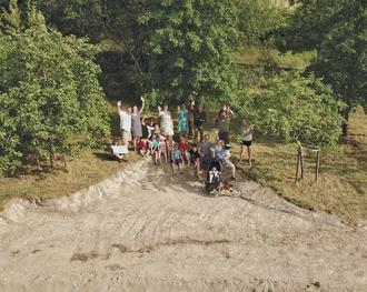 Wir, eine buntgemischte Gruppe aus Wisper, haben etwas Schönes draus gemacht: Unser Mehrgenerationen-Treffpunkt entsteht und wächst. Eine Fläche zum Boule ist fertig gebaut, ein Spielhaus und eine Baumelbank schmücken bereits den Platz, eine Sitzecke im Erdreich ist im Bau, eine Feuerschale wartet auf ihren Einsatz und als Nächstes steht der Zaunbau zur Straße hin an. Der Aufbau einer Benjes-Hecke und eines Naschgartens sind in Planung. Die Ideen gehen uns nicht aus: Slagline, Kletterstangen, Insektenhotel stehen noch auf der Wunschliste.