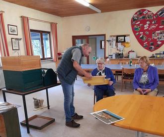 Zuletzt hat er das Honigschleudern erklärt und die Honigsorten, die es hier bei uns in der Region gibt.