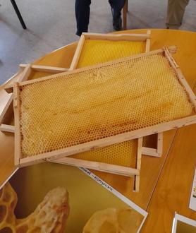 Herr Schmid hatte viele verschiedene Arbeitsutensilien dabei, z.B den Anzug, der sehr wichtig ist gegen Bienenstiche. Auch Kästen, Waben und schöne Bilder von seinen Bienen durften wir uns ansehen und anfassen.