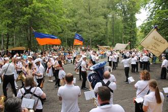 Am Sonntag wurden zunächst die Kerbemädchen am Kerbehaus Claudia und Michael Zimmermann abgeholt, anschließend am Rathaus die Honoratioren mit Bürgermeister Volker Diefenbach und Ortsvorsteher Lukas Brandscheid an der Spitze. Die Ehrengarde führte rund 1000 Zugteilnehmer zum Tanzplatz am Schmiedweg im Wald. Bei mildem und zum Glück trockenem Wetter konnten auch längst weg gezogene mit alten Bekannten bei dem einen oder anderen Gläschen Wein anstoßen.