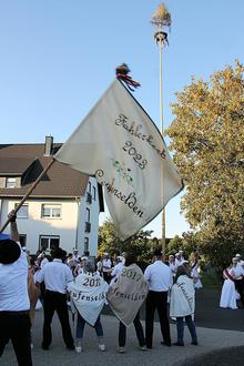 Beim abendlichen Umzug mit Tanz an allen zehn Kerbebäumen und Einzug in die Bornbachhalle wurde die Kerbegesellschaft unterstützt von jenen Kerbehut- und Kerbetuchempfängern der zurückliegenden Kerbejahre.