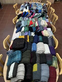Das nahmen 6 Heidenroder Frauen zum Anlass und strickten und häkelten Mützen, Socken, Schals, Stirnbänder und Handschuhe, die den Obdachlosen an diesem Tag als Geschenk überreicht werden. Bereits im letzten Jahr wurde in Laufenselden von 3 Frauen gestrickt und gehäkelt. Das hat sich in diesem Jahr verdoppelt.