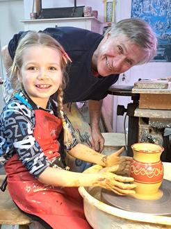 Besonderer Gast 2025 in der Römerhalle ist Thomas Benirschke aus Eltville. Auf archaischen Töpferscheiben dreht er im Eingangsbereich mit Erwachsenen und Kindern “vierhändig“ Gefäße und Figuren. Dabei bringt er die Teilnehmenden mit den Wurzeln der Töpferei und Keramik – mit Erde - in Berührung. Es wird erlebbar wie so gemeinsam etwas ganz Neues und Einmaliges entsteht. Dieser Beitrag wird unterstützt im Rahmen der Kulturförderung des Rheingau-Taunus-Kreises.