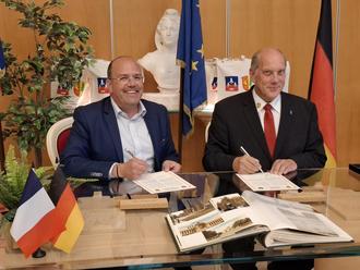Die Herren Bürgermeister Diefenbach und Gallant unterzeichnen die Partnerschaftsurkunde