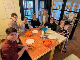 Das Helferteam in der Küche und die Schnippelfrauen (Vorbereitung des Essens) setzten sich aus vielen helfenden Händen zusammen und konnten so zu einem leckeren Mittagessen für unsere Seniorinnen und Senioren beitragen.