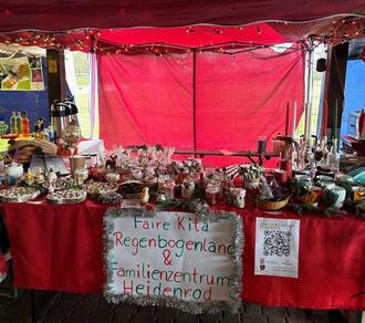 Am 30. November hatte die Faire Kita Regenbogenland zusammen mit dem Familienzentrum Heidenrod einen liebevoll dekorierten Stand auf dem Kemeler Weihnachtsmarkt. Zusammen mit den Kindern und einigen Eltern wurde ein buntes Sortiment an verschiedensten Dingen in tüchtiger Handarbeit erarbeitet.