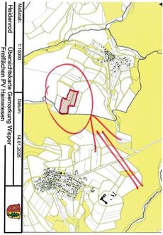 Flächennutzungsplanänderung für den Bereich einer noch einzurichtenden Freiflächenphotovoltaikanlage (FFPV), Lage Hainwiesen, Wisperheide, Dicke Birken, Mittelgewann