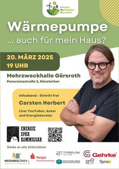 Wir von der Initiative Nachhaltiges Hünstetten mit unserem Energiestammtisch laden Hausbesitzer und andere Interessierte zum Infoabend ein: für Donnerstag, den 20. März 2025, um 19:00 Uhr in die Mehrzweckhalle Görsroth. Der Eintritt ist frei.