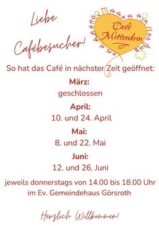 | 15:00 Uhr | Offenes Gemeindehaus im Ev. Gemeindehaus Görsroth |