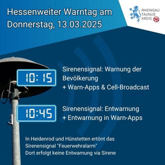 Punkt 10:15 Uhr heulen die Sirenen im gesamten Rheingau-Taunus-Kreis.