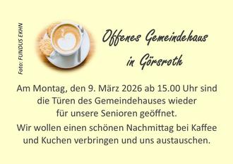 | 15:00 Uhr | Offenes Gemeindehaus in Görsroth |
