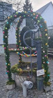 Jeder der daran vorbei fährt, jeder Wanderer des Hünstetter Kulturpfades, einfach jeder der am Brunnenplatz gemütlich verweilt kann sich nun bis Ostern an dem schönen Brunnen erfreuen.