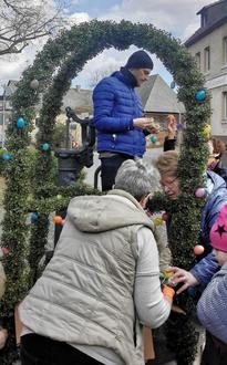 Der Brunnen wurde aus seinem Winterschlaf geweckt und in das österliche Kleid gesteckt.