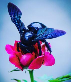 Das Kuratorium „Wildbiene des Jahres“ hat die Blauschwarze Holzbiene ausgewählt, weil sie (noch) relativ selten ist. Eigentlich im Mittelmeerraum beheimatet, hat sie sich aufgrund des Klimawandels zuerst in Süddeutschland ausgebreitet. Über die Rheinebene ist sie nun auch zu uns gekommen.