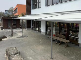 Püntlich zum Start der sonnigen Jahreszeit, wurde die Sonnenschutzmarkise der Kita in Wallrabenstein fertig gestellt.