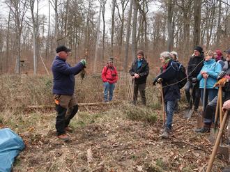 Bei der Pflanzaktion teilt Forstwirt Michael Kirsch sein Wissen mit den engagierten Teilnehmern.