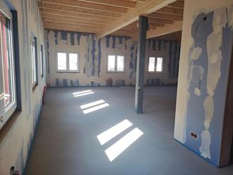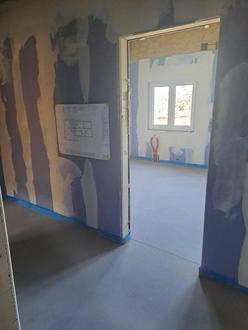 Der Estrich wurde eingebaut und muss nun durchtrocknen.