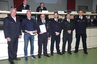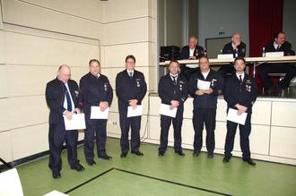 Sechs Kameraden erhielten das Brandschutzehrenzeichen, sechs Brandschutzverdienstzeichen und eine goldene Ehrennadel werden vergeben.