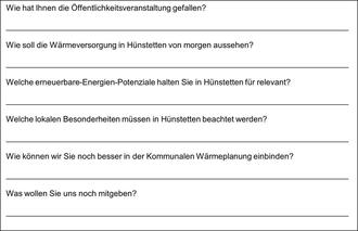 Die gezeigte Präsentation der Veranstaltung wurde bereits auf der kommunalen Webseite hochgeladen und ist unter dem Link https://www.huenstetten.de/buergerservice/klima-und-umweltschutz/kommunale-waermeplanung/250423-auftaktveranstaltung-hunstetten-final.pdf?cid=b27 zu finden. Derzeit befinden sich die Bestands- und Potenzialanalyse für Hünstetten in der Bearbeitung. Die entsprechenden Ergebnisse werden wieder öffentlich präsentiert. Das neue Veranstaltungsdatum wird rechtzeitig von der Gemeinde Hünstetten kommuniziert.
