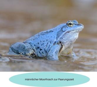 Der Moorfrosch ist eine kleinere Froschart und erreicht nur eine Größe von maximal sieben Zentimetern. Oberseits ist er meist hell- bis dunkelbraun gefärbt. Die Männchen können jedoch zur Laichzeit eine intensive Blaufärbung entwickeln. Über dem Rücken läuft meist ein breites helles Längsband, welches dunkel gesäumt ist. Das Trommelfell ist gut sichtbar unterhalb des Auges.