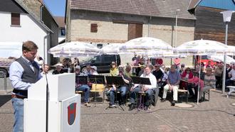 Der Bürgermeister der Gemeinde, Jan Kraus, begrüßte um Punkt 14 Uhr die Anwesenden und leitete durch das Programm. In seiner Rede würdigte Kraus den unermüdlichen Einsatz der örtlichen Vereine und Ehrenamtlichen: „Der Heimatverein hat bereits vor Wochen mit großer Sorgfalt den Platz vorbereitet und liebevoll verschönert. Die Freiwillige Feuerwehr hat den kompletten Aufbau für dieses Fest übernommen, und der Ortsbeirat hat den Platz festlich geschmückt sowie die Bewirtung für die Gäste übernommen. Nur durch dieses beeindruckende Engagement war es möglich, diesen Tag so feierlich zu begehen.“