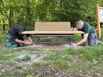 Bisher stand dort eine Holzbank des Förderverein Kesselbach e. V., die allerdings in die Jahre gekommen war und abgebaut werden musste.