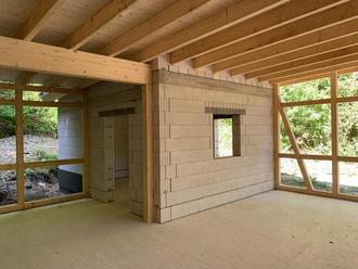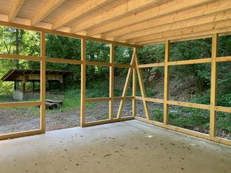 Der Wiederaufbau der Grillhütte schreitet voran.