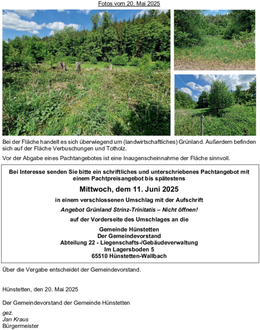Verpachtung von Grünland in Strinz-Trinitatis