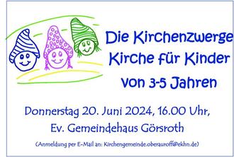 | 16.00 Uhr | Kirchenzwerge im Ev. Gemeindehaus Görsroth |