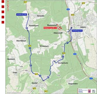 Eine Umleitung wird ausgeschildert. Diese führt über Görsroth, Neuhof und Eschenhahn sowie in umgekehrter Richtung.