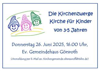 Donnerstag, 26. Juni, 14:00 bis 18:00 Uhr Café Mittendrin im Ev. Gemeindehaus Görsroth, 15:00 bis 17:00 Uhr Spielenachmittag im Ev. Gemeindehaus Beuerbach. In dieser Zeit ist die Katharinenkirche für Besucher geöffnet. 16:00 Uhr Kirchenzwerge im Ev. Gemeindehaus Görsroth