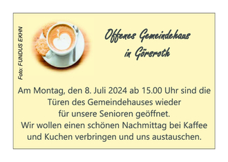 | 15.00 Uhr | Offenes Gemeindehaus in Görsroth |