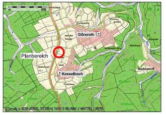 2. Ausschnitt aus der Topographischen Karte zum Überblick der Lage des Planbereiches (ohne Maßstab):