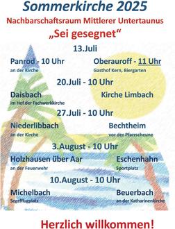 | 11:00 Uhr | Sommerkirche in Oberauroff, Biergarten Gasthof Kern |